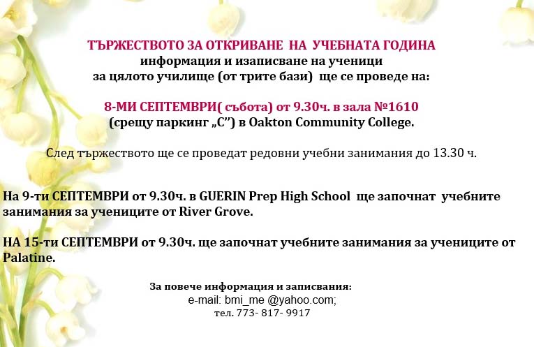 * Училището предлага обучение за бързо овладяване на българския език за ученици над 12 години.