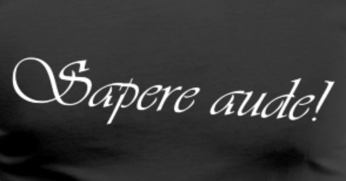 * Имануел Кант използва sapere aude за мото на есето си “Отговор на въпроса: Какво е Просвещение?” Ето част от него: „Просвещение е изходът на човека от непълнолетието, което той сам си е причинил. Непълнолетие е невъзможността да се ползваш от разсъдъка си без ръководството на някой друг. Самопричинено е това непълнолетие, когато причината му не лежи в недостиг на разсъдък, а в липсата на решителност и смелост да се ползваш от него без ръководството на другиго. Sapеre aude! Имай смелост да си служиш със собствения разсъдък! – ето това е девизът на Просвещението“.