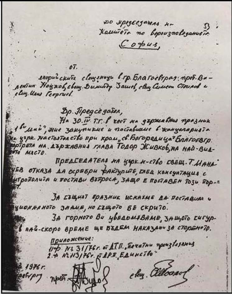 Като изключително напорист и желаещ слава чрез светските власти, през 1976 г. Ноцков слага портрета на Тодор Живков на представително място в църковно помещение. Документът тук: