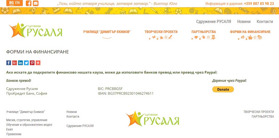 Начини за дарение: http://www.rusalya.org/bg/info/i68/Форми-на-финансиране.html