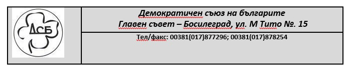 Изхождайки от всичко това, Демократичният съюз на българите призовава всички осъзнати българи в Западните покрайнини да бойкотират изборите за Национален съвет на българското малцинство и да не се изкушават да гласуват за листите, които се контролират от Сръбската прогресивна партия.