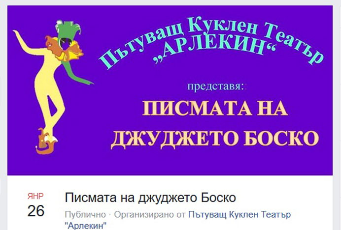 Заповядайте на куклен театър с първото ни за 2019 година представление с пиеската „Писмата на джуджето Боско“.