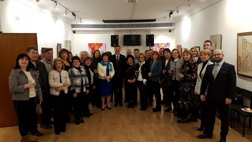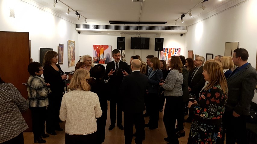 Някъде по средата на приветствието й в салона влезе нашият посланик, г-н Константин Димитров. Точно тази вечер в салоните на посолството той се сбогуваше с представителите на дипломатическите мисии и с колектива на българското посолство, защото приключваше мандатът му в Лондон. Придружаваше го г-н Светозар Димитров от политическата секция, който отговаря за училищата във Великобритания. Благодарни сме, че г-н Посланикът отдели време от важния си ангажимент, за да дойде и поздрави нашите гости и да сподели няколко думи, в които високо оцени работата на българските училища зад граница.