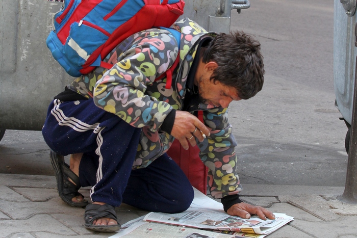 Клошар, вече от няколко дни, се е излегнал до подлезните заведения, зъзне под завивките, не му пука, че наоколо има все повече боклуци – основно негови.