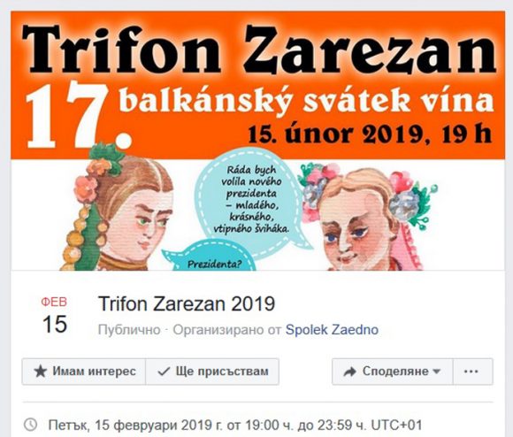 Балканите отново се връщат в Прага и отприщят весело настроение в мрачния и студен февруари. По време на вълнуващата вечер на Трифон Зарезан, ние се прехвърляме чрез музика, танци, вино, храна и сърдечна атмосфера към оживените южни райони. Няма да ги доведем в Прага от чуждестранни групи или агенции, но нашите съграждани, които имат корени на Балканите, съчетават любов, работа или просто съдба.