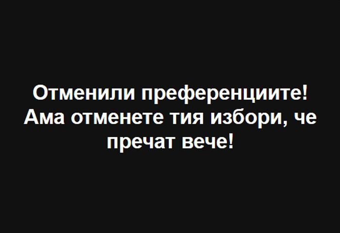 …През последните дни мафията окончателно лиши гражданите от някакъв избор и дори имитацията на избори, която се предлагаше, бе отменена и вече изборите са само формалност. През последните дни, месеци и години, и стотиците скандали и гейтове свалиха маските и разкриха престъпната същност на управниците ни. ДжиПи-гейт, ДДС-гейт, ЦУМ-гейт, Янева-гейт, „Ало, Ваньо“, „Ти си ги избра“, Кръстник-гейт, Новичок-гейт, Суджук-гейт са само много малка част.