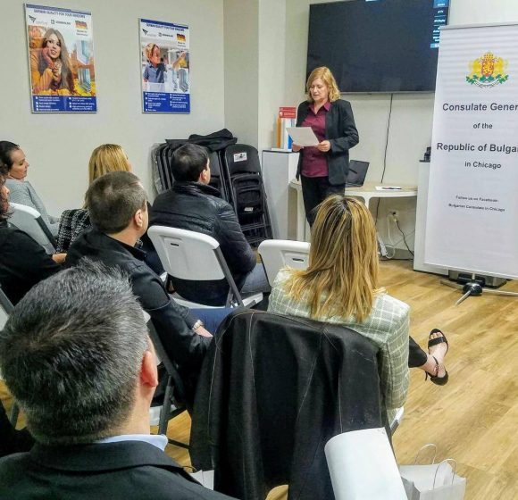В четвъртък вечер на 4 април 2019 г. се проведе поредната Четвъртата среща на българския бизнес в Чикаго. Тя бе организирана от Генералното консулство на Р. България в Чикаго. Гост говорител беше г-жа Дарина Колевa, адвокат в Jenner & Block LLP. Тя представи интересна информация за регистрацията на различни видове компании в САЩ, както и източници на правна помощ.