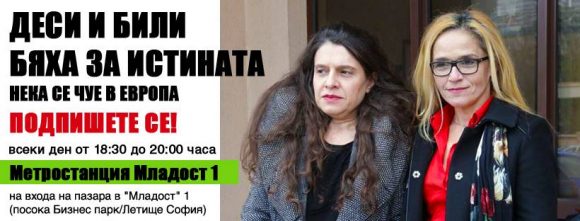 Хора, осъзнайте едно – това, което се случи вчера на Деси и Биляна, се случи и на Вас, всички Вас, българи. Това беше послание, това беше назидание към всички нас! Днес са те, утре може да е всеки един от нас! Има ли някой, който да вярва в правосъдието и че Темида е сляпа, и справедлива след вчерашния процес? Тези две жени за пореден път бяха сложени в казана и консервирани за 15 и 20 години.