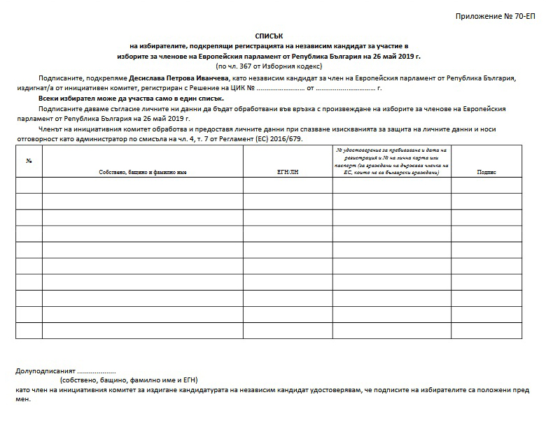 „Бланката за събиране на подписи е споделена на адрес http://izbori.zelenmladost.org/blanka-podpisi.pdf