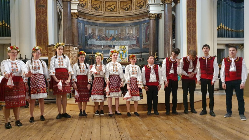Учителят ни по народно пеене, г-жа Десислава Стефанова – ръководител на Българския и Швейцарския хор за народно пеене, кръшна гласчетата на учениците с „Катерино моме” и с