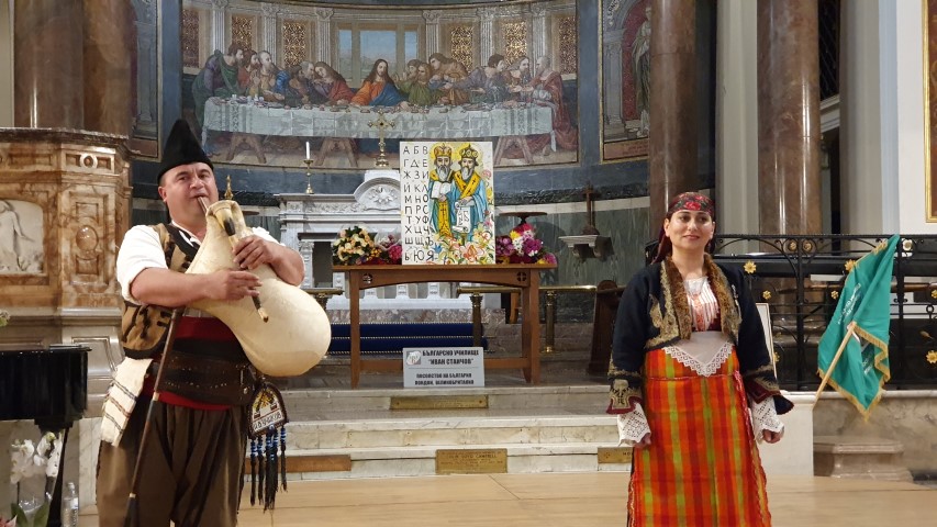 И след него на сцената запристъпиха гостите ни от Родопите – гайдарят Илия Учиков и народната певица Марияна Евтимова. Заехтя залата на „Св. Петър” с „Излел е Дельо хайдутин”, та полетяха и сърцата ни в Космоса.