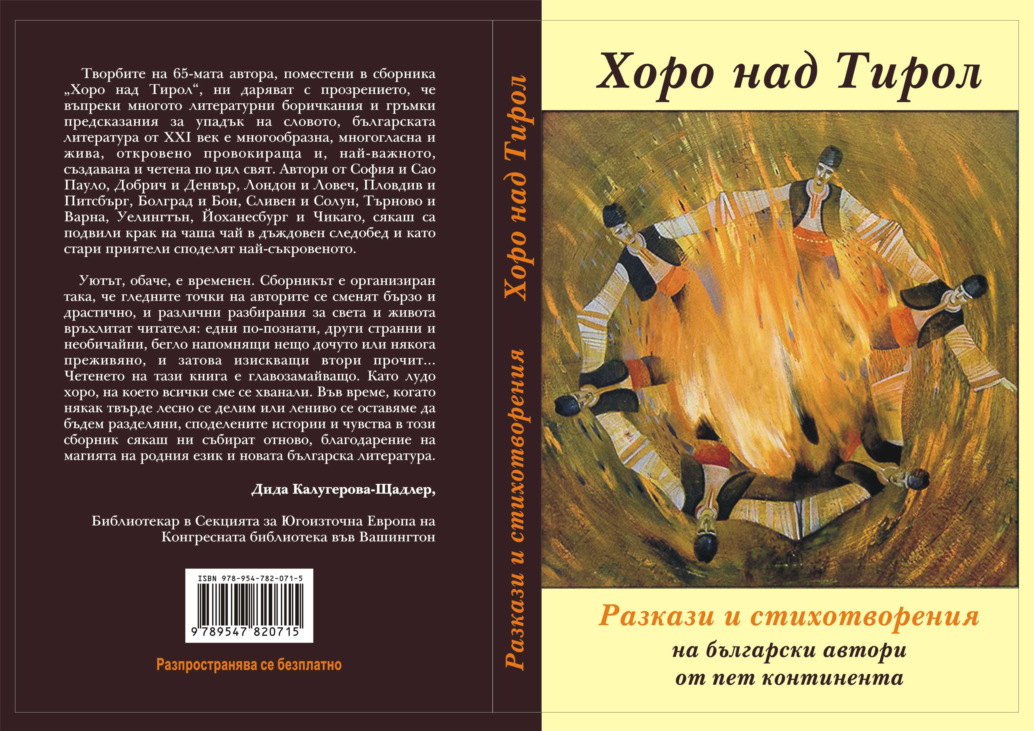 На 25 май 2019 г., събота, от 18 часа местно време, в пресклуба на Съюза на българските журналисти в София (ул. „Граф Игнатиев“ № 4) ще се състои представяне на литературния сборник с творби на 65 български автори от пет континента „ХОРО НАД ТИРОЛ“. За представянето на книгата в София досега са потвърдили участие авторите Рада Добриянова от Швеция, Елена Пеева-Никифоридис от Гърция, Дарина Шнайдер от Германия, Генка Петрова от Добрич, Магдалена Шумарова от Петрич, Емил Измирлиев, Николай Колев – Босия, Пламен Сивов, Петър Калинов и Слави Тодоров от София, Георги Стойков от Нови хан. Книгата ще бъде представена в София от поета Ивайло Диманов.