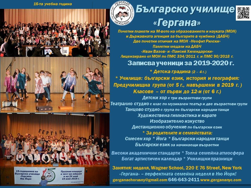 Добре дошли в „Гергана“, първото българско училище в Ню Йорк, за новата, 16-та по ред, учебна 2019-2020 година!