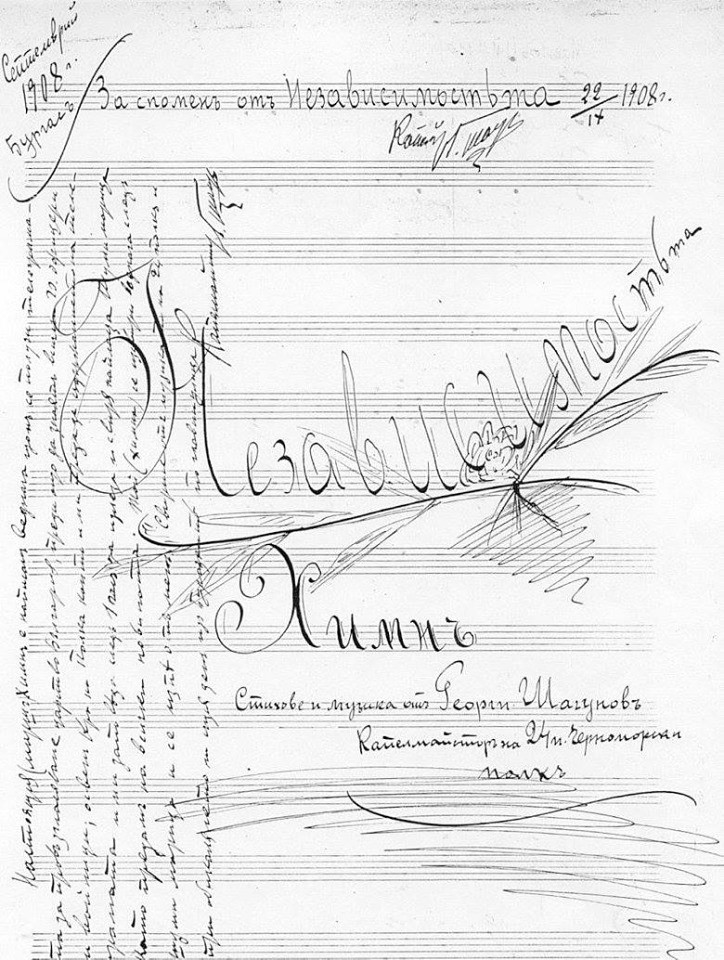 Единственият в България химн на Независимостта е написан от маестро Георги Шагунов в Бургас преди 111 години – пише д-р Георги Чалдъков от Медицинския университет във Варна, който изпрати за нашето издание и факсимиле от документ с този химн (Документът – вж. по-горе – е от Държавна агенция „Архиви“ – Бургас.)