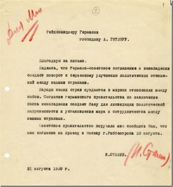 От своя страна Хитлер, който отначало показва естествени съмнения към омразния болшевизъм, приема московските аванси, въпреки че вече е решил нападението над Съветския съюз.