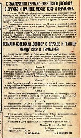Договорът между СССР и Германия е съдбоносен, тъй като с него се извършва новата, четвърта подялба на Полша, но и също защото, гарантирайки гърба на Хитлер, Москва го улеснява както за нападението му против Полша, тъй и за войната, която може да се наложи на френския фронт.
