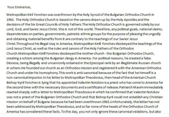 Аз молитвено се надявам всеки получател да прочете внимателно всичко написано и да разбере истината, фактите, документите, нарушенията, както и за липсата на отговорност и съвест на всички виновници за състоянието и нежеланата ситуация, в която е поставена нашата църква.