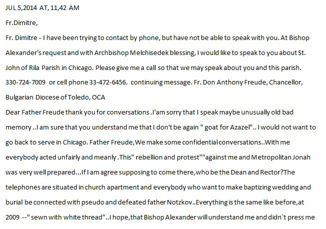 За писмото на Епископ Александър до сегашния отец, в което той го унижава и заплашва, заедно с отговорите и обясненията към написаното, Вие можете да прочетете тук: