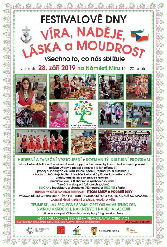 Българска православна общност в Чехия кани сънародници и всички жители на Прага на Фестивала „Вяра, Надежда, Любов и Мъдрост“. Събитието ще се състои на 28 септември, събота, от 10 до 20 часа местно време, на Площада на мира в чешката столица.