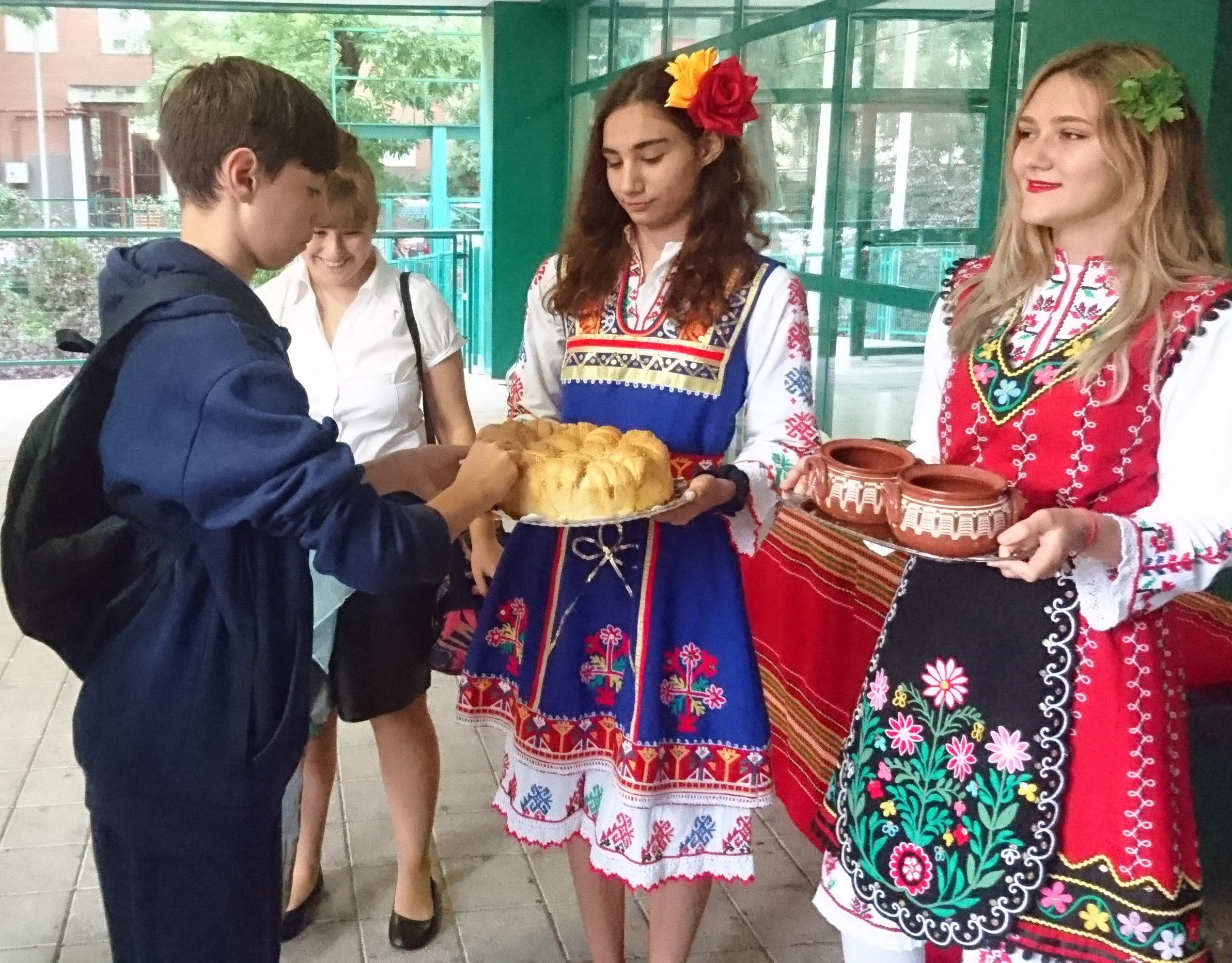 След представяне на класните ръководители, всички ученици по стар български обичай бяха посрещнати с домашно приготвена питка с мед и шарена сол.