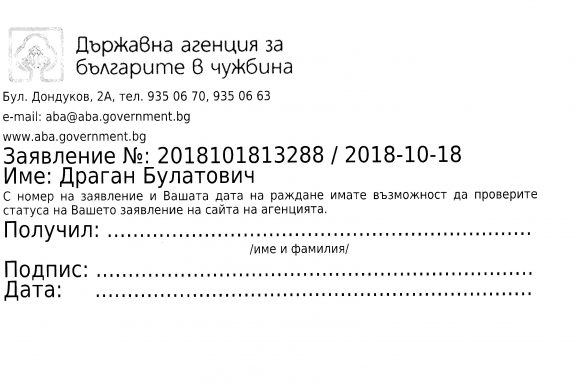 5. Входящ номер на заявлението на Драган Булатович в ДАБЧ. Входящият номер е от 18.10.2018 г.