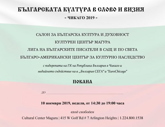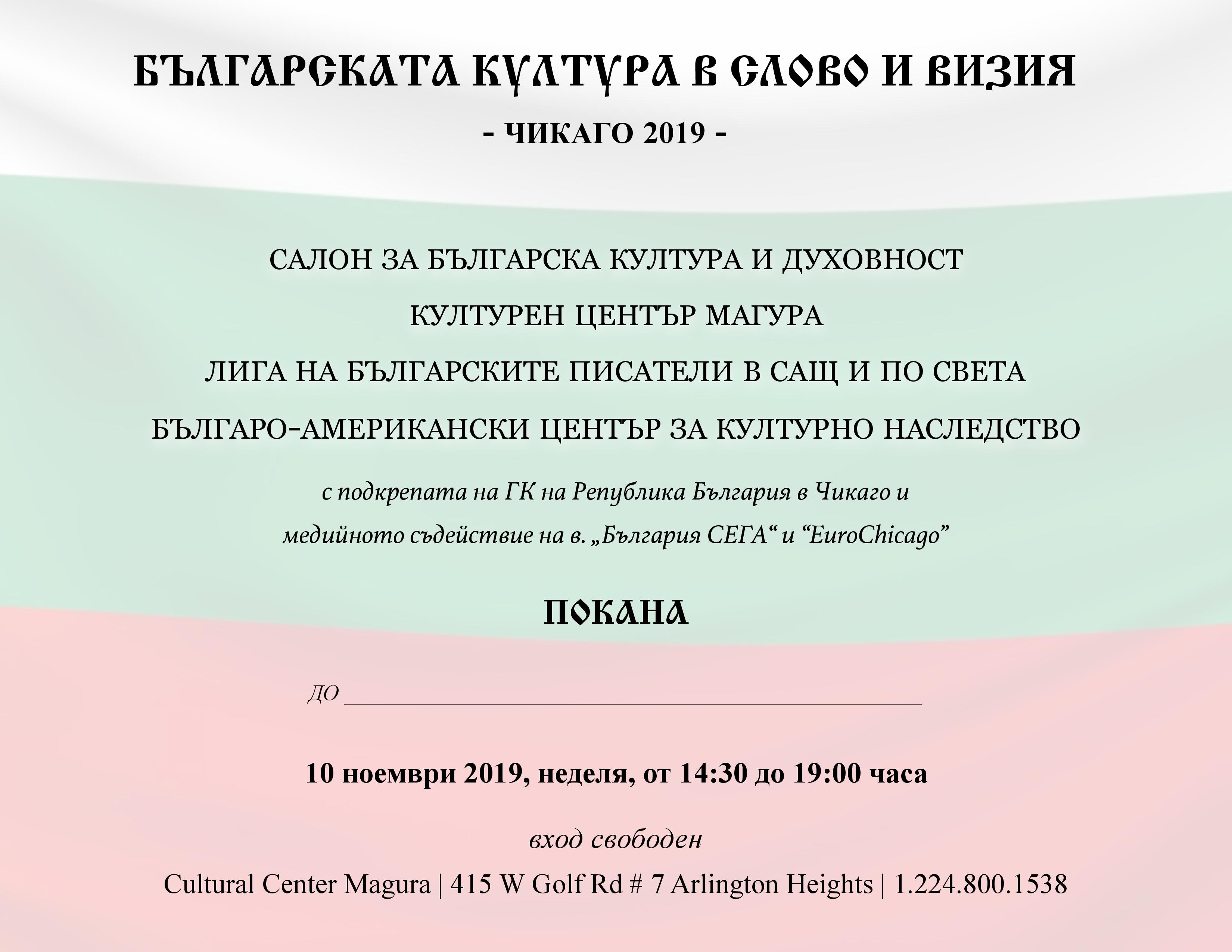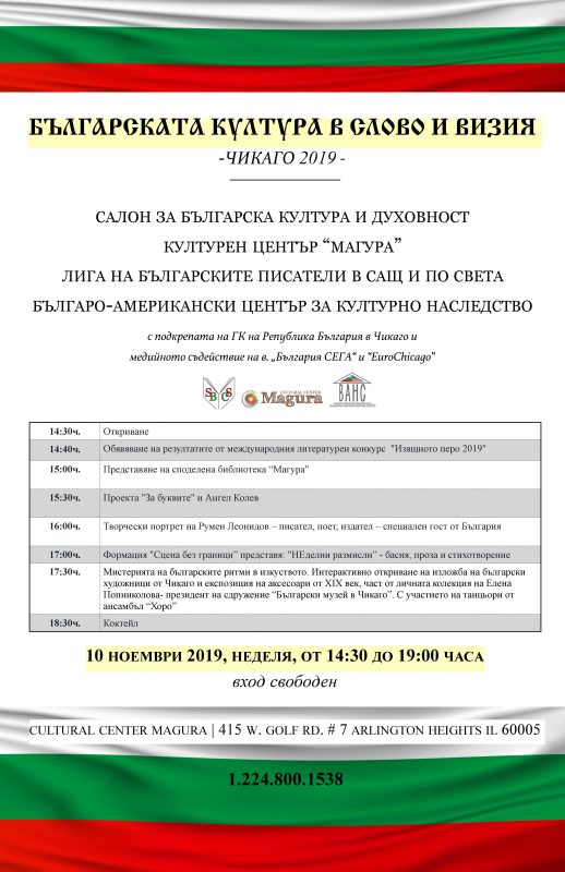 Скъпи приятели, ценители и почитатели на българското слово, фолклор, театрално и изобразително изкуство! Напомняме Ви, че на 10 ноември (неделя), от 14:30 часа, в българския културен център „Магура“, ще бъде представена „Българската култура в слово и визия“.