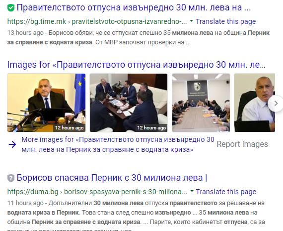 От съобщенията на медиите вчера, 30 декември, научаваме: «Правителството отпусна извънредно 30 млн. лева на Перник за справяне с водната криза»