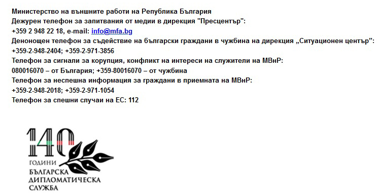 Из Отчет на Министерството на външните работи на Р. България за 2019 г., изпратен до медиите от пресцентъра на министерството. (Целият текст тук – Отчет на МВнР)