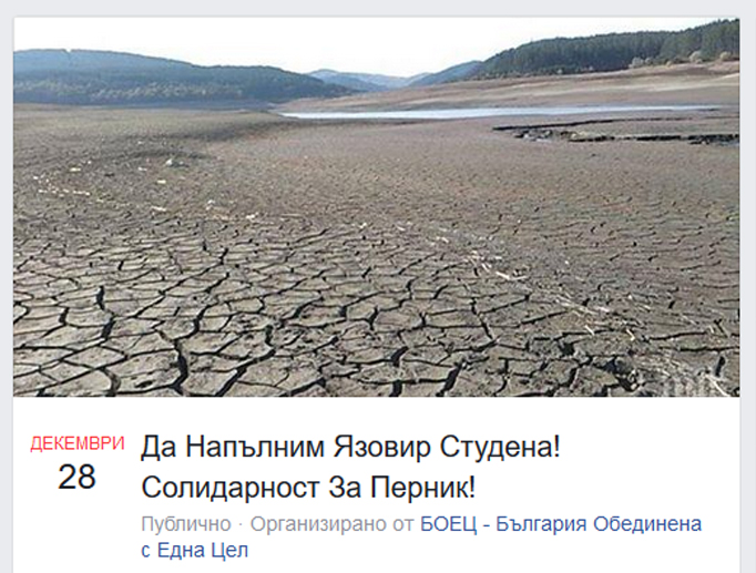 Гражданско движение „БОЕЦ“ инициира на 28 декември 2019 г., събота, и в следващите съботи – на 4, 11 и 18 януари 2020 г. – протестно събитие под надслов „Да напълним язовир „Студена“! Солидарност за Перник“.