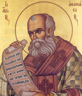 Св. Атанасий бил голям защитник на Православната вяра. Участвал в Първия Вселенски събор, дето се показал с благодатно озарен ум в защита на вярата против ереста на Арий. На 28-годишна възраст, след смъртта на архиепископ Александър, е ръкоположен за архиерей на негово място в Александрия. Александрийският епископ е наречен „баща на православието“. За вярата е преследван в изгнание 15 години. Страдал при императорите Констанций, Юлиан Отстъпник и при Валент, по време на когото известно време се укривал в една гробница. Жителите на Александрия тъй настоявали да се върне епископът им, че императорът като се опасявал от бунт, се съгласил. Развива удивителна пастирска дейност, благодарение на която в най-кризисната епоха на древната Църква православното учение устоява на Изток, а Западът се запознава с източното монашество. И словото, и животът му стават израз на добродетелта.