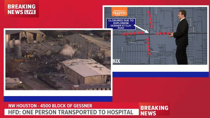Местният шериф Ед Гонзалес казва, че за експлозията е била съобщено за първи път около 4:15 ч. тази сутрин и се е случила в промишлена сграда с адрес около 4500 Gessner Road.