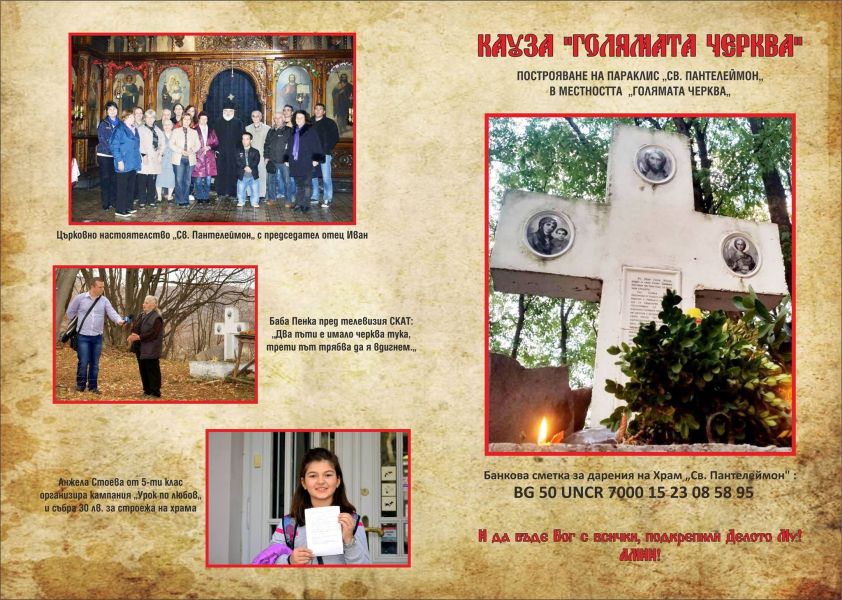 Построяването на дом Господен е дело мъчно във времена на безпросветност и духовен упадък, но това още повече ни задължава да бъдем съзидателни, да бъдем отговорни за възпитанието на децата ни. За строителството на храма са нужни 30 000 лева, събрали сме до момента 10 656 лева, благодарение на ученици и пенсионери, които започнаха начинанието с много вяра и ентусиазъм. За наша радост, каузата ни стана национална, подкрепиха ни много медии и хора на изкуството. Но въпреки многогодишните ни усилия, не можем да се справим с набирането на нужните средства. Обръщаме се към Вас с надежда, че ще ни помогнете и ще подкрепите това Богоугодно дело.