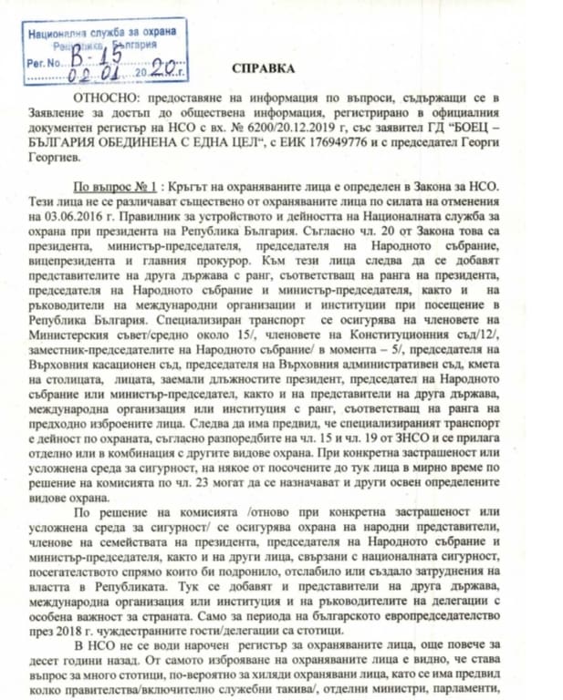 БОЕЦ поискахме информация по реда на Закона за достъп до обществена информация и получихме частичен отговор. Макар и непълен, информацията, която получихме, е меко казано скандална и показва извратеност на изпълняваните от тази служба задачи.