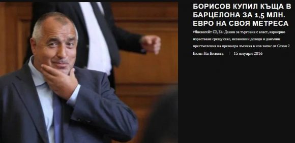 В края на 2015 г. в България бяха разпространени някои записи, в които фигурира съдийката и председателка на Софийския съд (така е в оригинала – б. пр.) Владимира Янева, както и друга магистратка – Румяна Ченалова. Съдийката Янева бе отстранена от българското правителство и на записите се чува как тя коментира различни случаи на корупция, злоупотреба с власт и влияние, каквито упражняват политиците спрямо българското правосъдие. Също така се споменава съществуването на една „къща в Барселона”, която бил купил министър-председателят Борисов, за да настани там „своята любовница”.