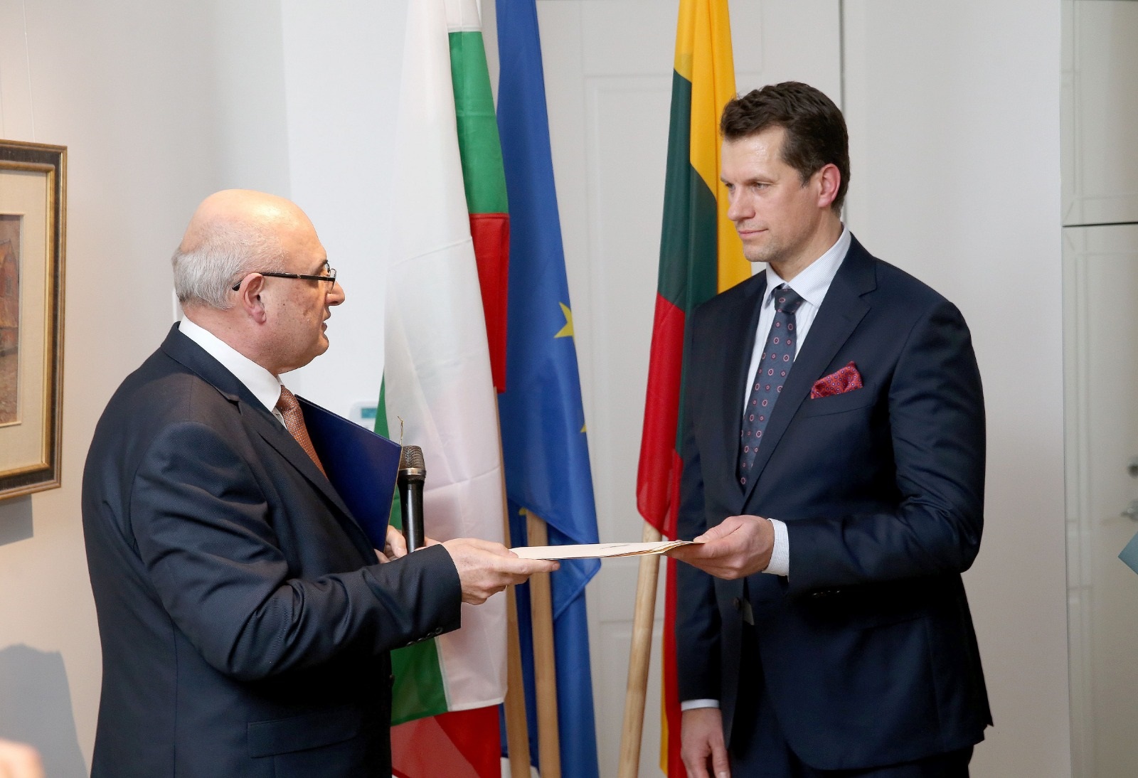 Лауринас Йонушаускас получи консулския си патент и екзекватура за територията на Литва на официална церемония във Вилнюс. Българският посланик в Полша, акредитиран и за Р. Литва, Емил Ялнъзов, приветства новия почетен консул от името на вицепремиера и външен министър Екатерина Захариева, и подчерта близките приятелски и съюзнически отношения между България и Литва.