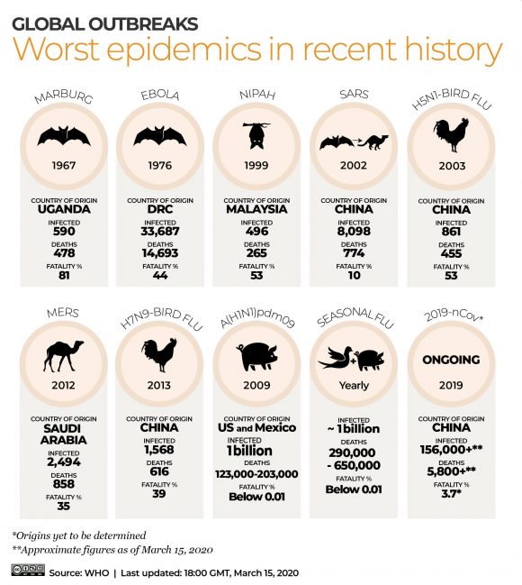 В миналото пандемични вълни от чума, вариола, морбили, туберкулоза, малария, коремен тиф, проказа, жълта треска и грип са обезлюдявали големи райони и дори отслабвали силите на велики държави.