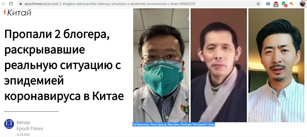 Двама китайски граждани, Фен Бин и Чен Цюши (на снимката, заедно с лекаря), решиха да проучат реалната ситуация в Ухан и да разкрият истината пред Китай и света. Но и двамата „изчезнаха“ и млъкнаха. Техните близки и читатели се притесняват, че може би са изчезнали завинаги. Слава Богу, че у нас журналистите засега само ги бият (последният случай бе преди 10 дни). Разбира се това не се отнася за тези от тях, които са близки до властта.