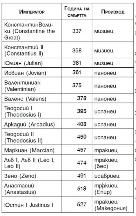+ Георги Сотиров / преведен от Иван Стаменов. Виж “ ИванСтаменов.ком „/ в своята студия “ Елемента нова про хистория Македоно – Булгарика „, има сходни тези с горните наши учени ХОРРА и освен това се занимава с ЕЗИКА на КОНСТАНТИН ВЕЛИКИ / родом от Ниш / и доказва, че този РИМСКИ ИМПЕРАТОР е говорил на трако – болгаро – словенски и как езика на древните ГОРТСИ се употребява масово в елинският език, като повечето ФИТО и ЗОО понятия на елински са взети от ГОРТСИте, сиреч са Болгаро – Словенски по произход?!? В “ Убийството на Юстиниановата самоличност “ , Георги Сотиров доказва, че и Юстиниан / родом от Призрен, а баща му е доказвал родство с Константин Велики?!? / и чичо му Юстин са трако – словено – българи! Изброявайки Римските Императори произлезли от Балканския полуостров и Панония, той твърди че: