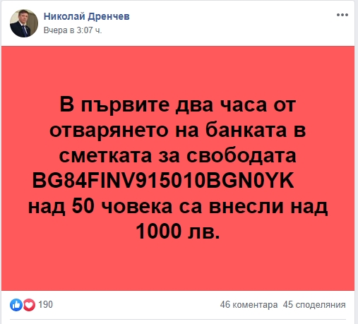 Оказва се, че борците за народни правдини, които уж отхвърлиха юрисдикцията на престъпното правителство, вече са открили банкова сметка на „СВОБОДАТА“, но само за свободата на собствения си водач. А кой ще събере парите за глобените граждани с по 5000 лв.? Та за три дни в Пловдив са глобени 92-ма, а дори в родната на Костадинов Варна те са 23-ма – вж. снимката долу.