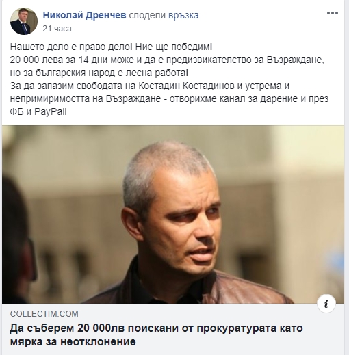 „Властимащите прибягват до политически репресии, за да се борят с най-голямата опозиционна политическа организация, която явно и смело разкрива пред гражданите последиците от некомпетентните им действия. Налице е поредната злоупотреба с власт срещу политически опонент, тъй като това не е изолиран случай на подаване на жалби срещу д-р Костадинов от представители на властта.