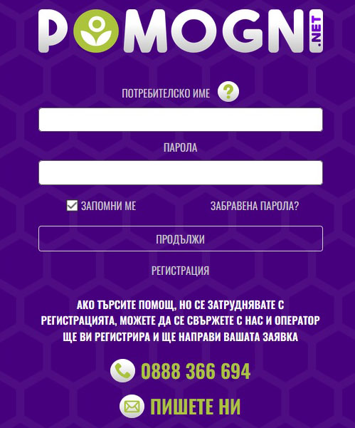 Платформата за взаимопомощ Pomogni.net, която вече е активна и разполага с над 1000 доброволци от цялата страна, работи и има капацитета да помогне в този труден момент на стотици възрастни хора да избегнат риска от заразяване. Всеки самоизолирал се, който има нужда от набавянето на хранителни и други продукти, може веднага да се обърне за помощ към платформата, за да получи необходимото до няколко часа. Това е място, което събира хората, които не могат или не трябва да напускат домовете си, но имат нужда да си набавят хранителни и други основни продукти, с доброволци, които са готови да ги посетят и да им ги доставят. Приложението е напълно безплатно и е реализирано от IT доброволци, за да свърже в този тежък за всички момент хората, които са готови да помогнат, с тези, които имат нужда от помощ. Работата на доброволците е безвъзмездна.