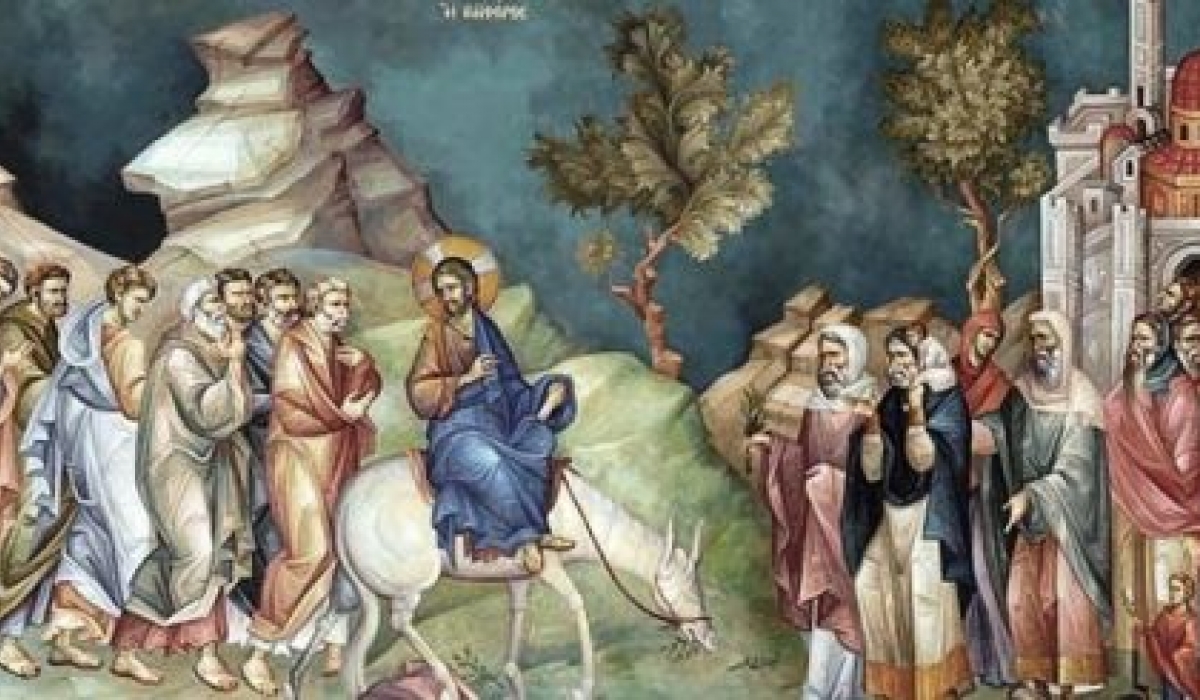 Според евангелистите Христос пристига в града, яздейки магаре, а вярващите го посрещат, като разстилат пред него дрехите си и маслинови клонки. След като възкресил престоялия четири дни в гроба Лазар, брат на сестрите Марта и Мария, Иисус Христос тръгнал за Йерусалим.