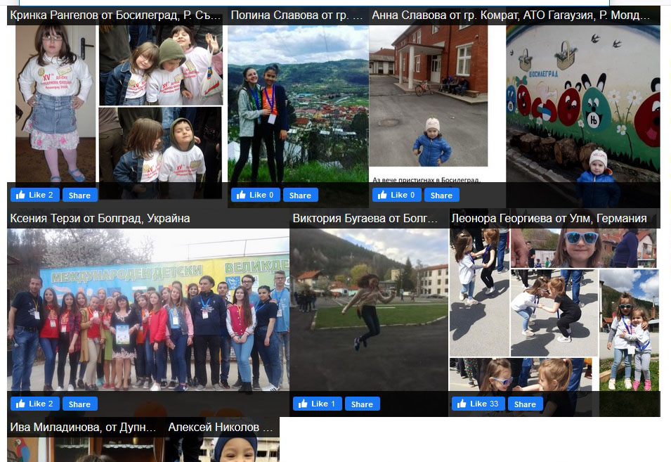 Специални благодарности към всички участници в конкурса. Най-активно участие взеха децата от Украйна, Молдова, Испания, България и Сърбия. Имахме участия и от Германия, Чехия и Русия.