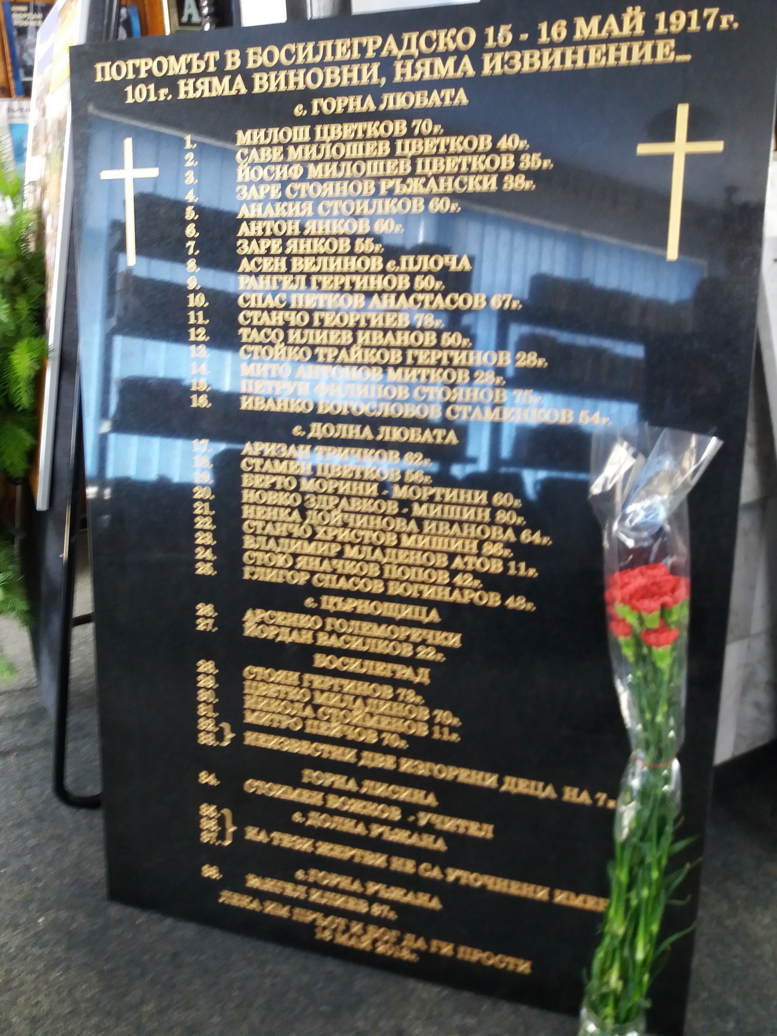 Навършиха се 103 години от Босилеградския погром и две години, откакто две паметни плочи с имената на невинните жертви, които сръбската власт не разрешава да бъдат поставени, стоят в помещенията в КИЦ „Босилеград”. Въпреки положените дипломатически усилия и въпреки дадените обещания на най-високо ниво.