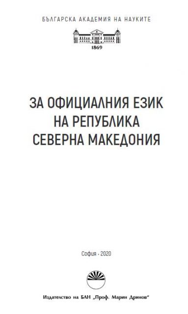 Излезе от печат изследване на Българската академия на науките „За официалния език на Република Северна Македония“. Книгата бе представена на 7 май т.г. в София, в Централното управление на БАН.