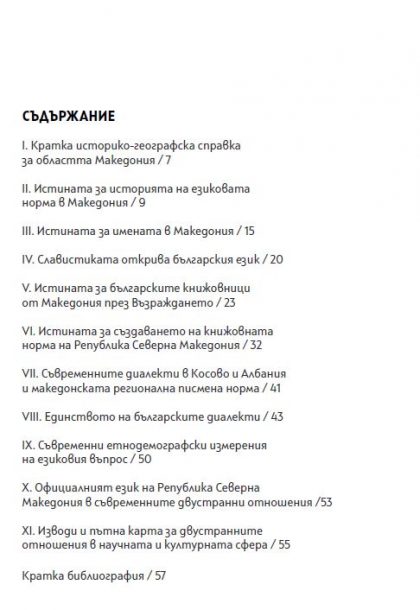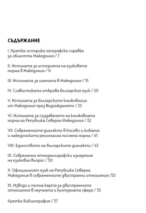 Създаден бе научно обоснован текст по темата за официалния език на Република Северна Македония, написан на популярен език и предназначен за широк кръг читатели. Изданието е богато илюстровано, като са показани и основните македонистки фалшификации.