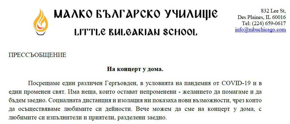 Гергьовден ‘2020 в подкрепа на център „Малката България“ – Чикаго