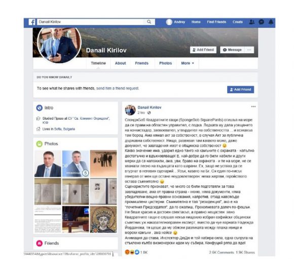 Моля, първо да установите дали този профил е действително на г-н Кирилов, защото написаното е на толкова ниско професионално, културно и граматическо ниво, че е трудно за
