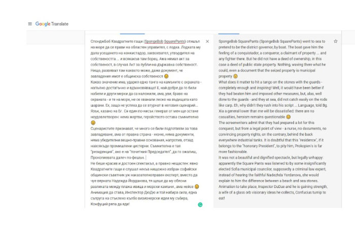 За ваша справка прилагаме копие от коментара, както и превода му на английски чрез Гугъл.