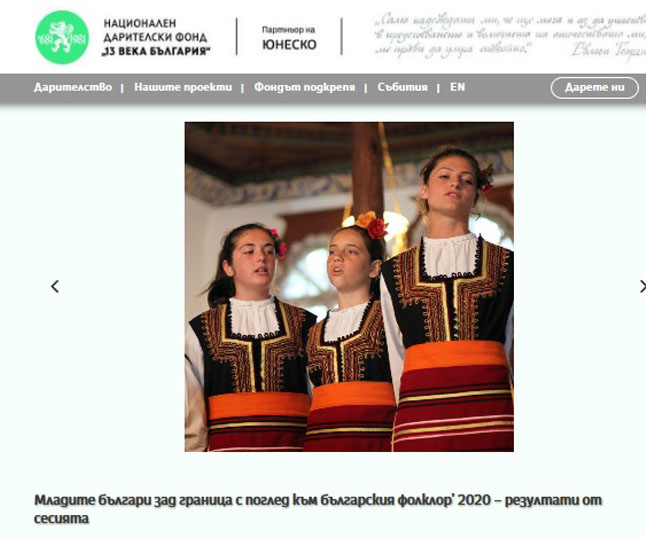 Национален дарителски фонд „13 века България“ обяви резултатите от сесията си на тема „Младите българи зад граница с поглед към българския фолклор – 2020“.